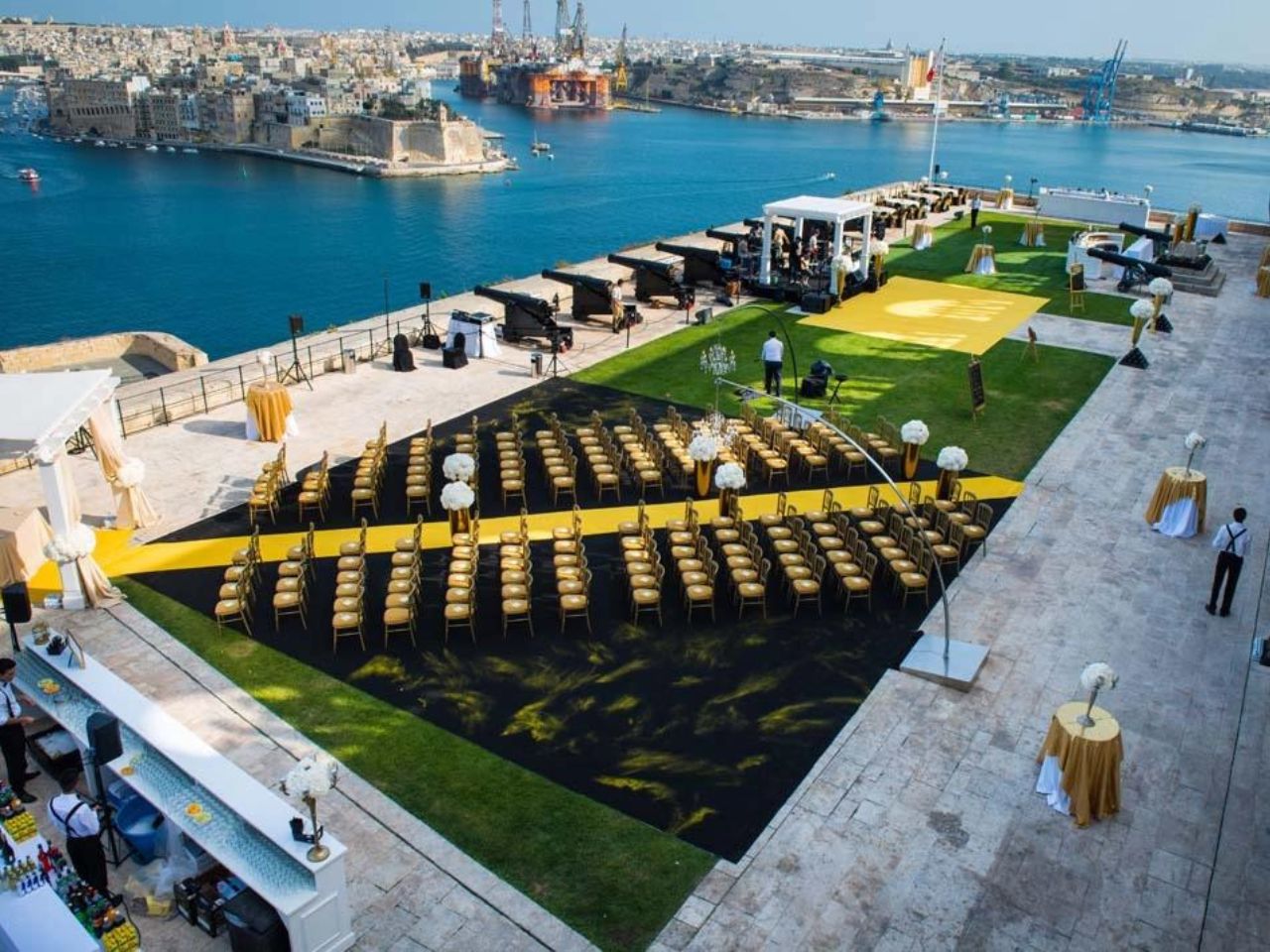 The Saluting Battery offers one of the finest vantage points overlooking Malta’s Grand Harbour. Its history is as old as Valletta itself, having been constructed in 1566 as part of the city by the Order of St. John, based on designs by military engineer Francesco Laparelli. Valletta’s construction followed the end of the Great Siege of 1565. During that conflict, Ottoman forces easily overran the Valletta promontory, erecting powerful siege batteries to confine the Knights of St. John and the Maltese within Fort St. Angelo and the walled towns of Vittoriosa and Senglea. Today, this historic location serves as an exclusive venue for private events.