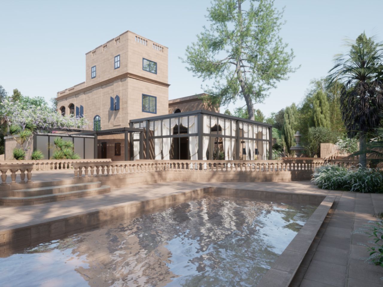 Villa Overhills, located in a vibrant cultural hub, has been meticulously restored by Elia Caterers, blending contemporary elements with traditional features like stone slabs (xorok) and corbels (kileb). The venue features a state-of-the-art open kitchen and offers a customer-centric experience with fully air-conditioned spaces, free Wi-Fi, accessible facilities, and an outdoor pool area. Guests can also enjoy four main bars, a photo area, gardens and terraces with stunning country and sea views, and complimentary private parking. The new conservatory and adaptable lighting design make Villa Overhills a versatile venue for year-round events.